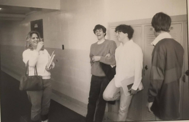 Stacey (Left) approaching Mickey and Aaron in highschool.